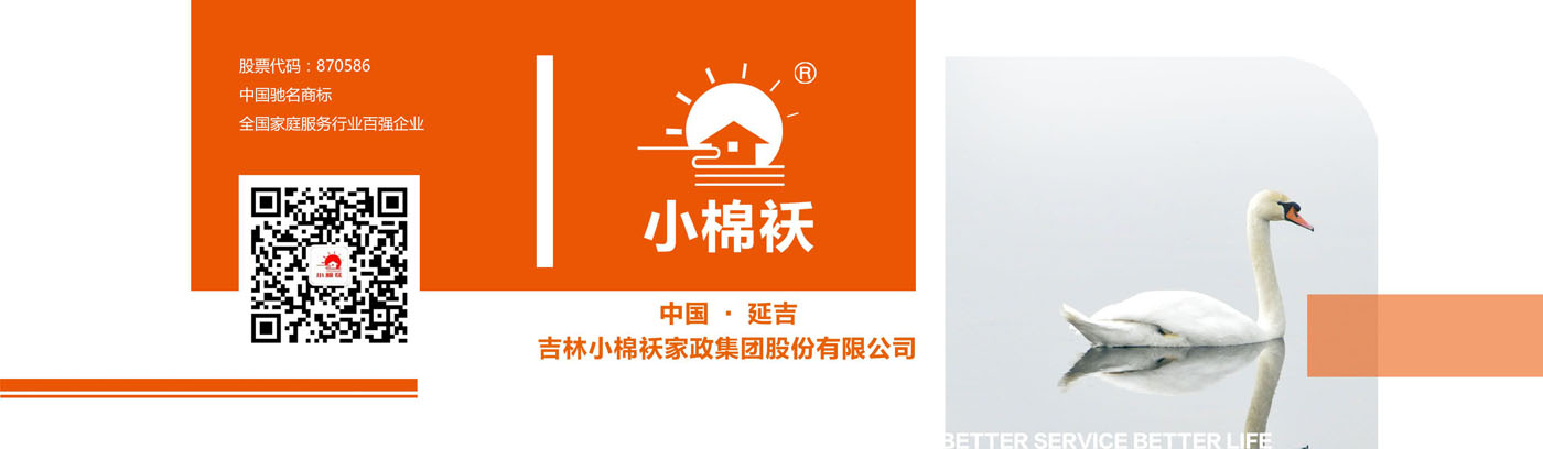 吉林小棉襖家政集團(tuán)股份有限公司成立于2004年6月3日,注冊資本4020萬元,主營業(yè)務(wù)有物業(yè)管理、培訓(xùn)學(xué)校、家政服務(wù),勞務(wù)派遣、保安、保潔服務(wù)等。先后安置下崗職工和農(nóng)村剩余勞動力就業(yè)二萬多人。公司先后榮獲:全國家庭服務(wù)行業(yè)知名品牌單位、全國優(yōu)秀民辦職介機(jī)構(gòu)、全國家庭服務(wù)行業(yè)百家誠信企業(yè)、中國清洗保潔十大標(biāo)兵企業(yè)、吉林省十大服務(wù)業(yè)品牌、吉林省守信用重合同單位、吉林省馳名勞務(wù)品牌、吉林省誠信維權(quán)先進(jìn)單位、吉林省清費者滿意單位等榮譽(yù)稱號。2011、2012連續(xù)二年被評為全國家庭服務(wù)行業(yè)百強(qiáng)企業(yè)。